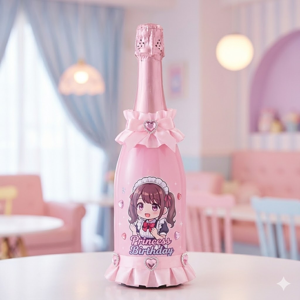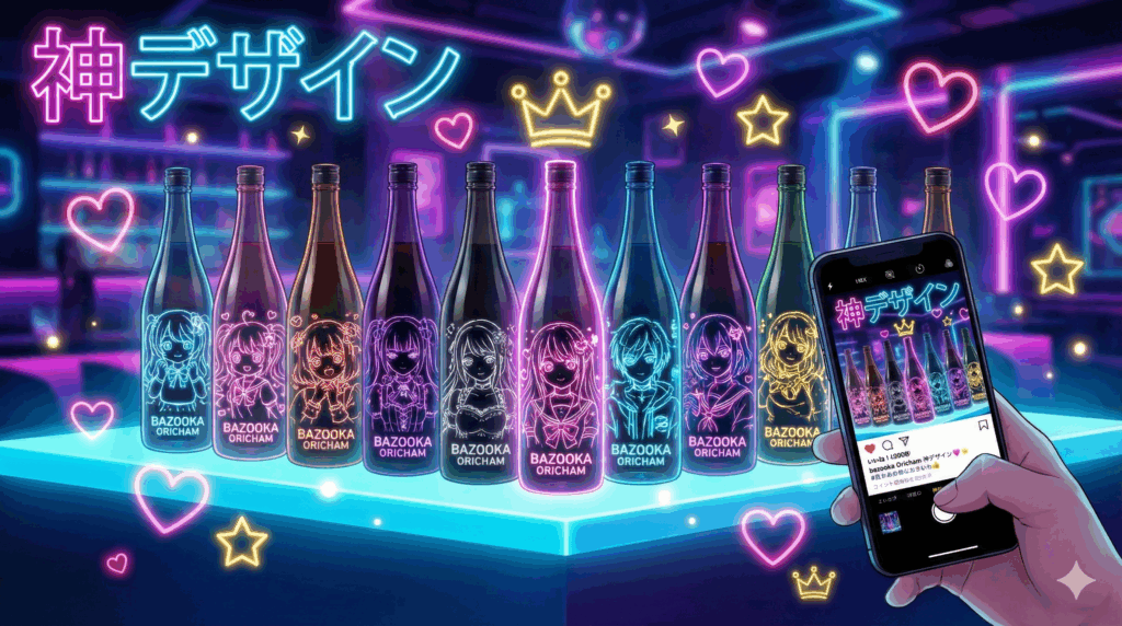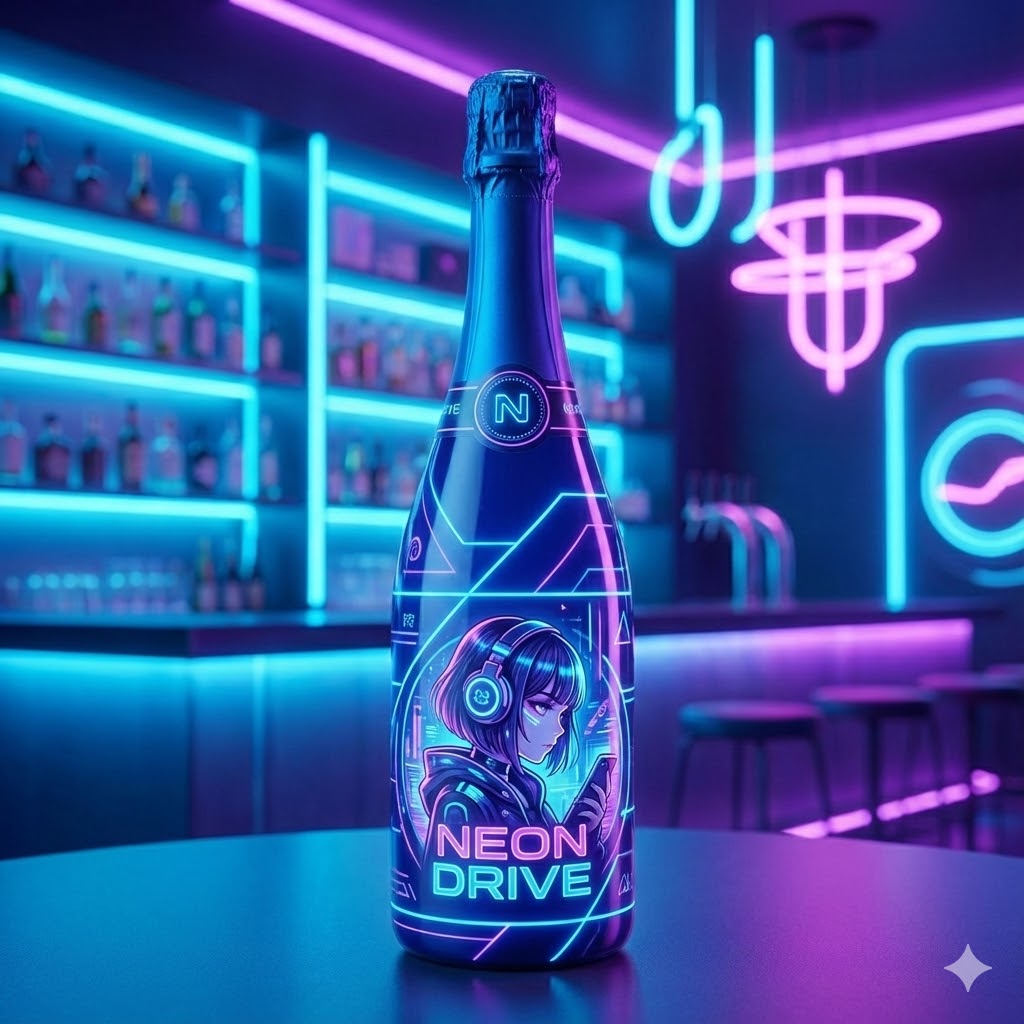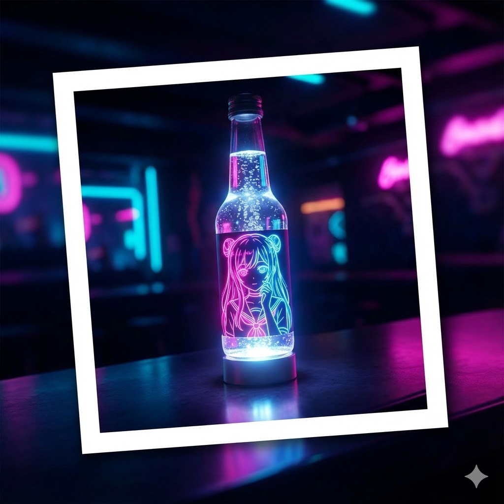 ネオン、夢かわいい、サイバーなど、どんなコンセプトでも最高に映えるビジュアルを実現。ボトルが卓上で最も輝くことをお約束します。
