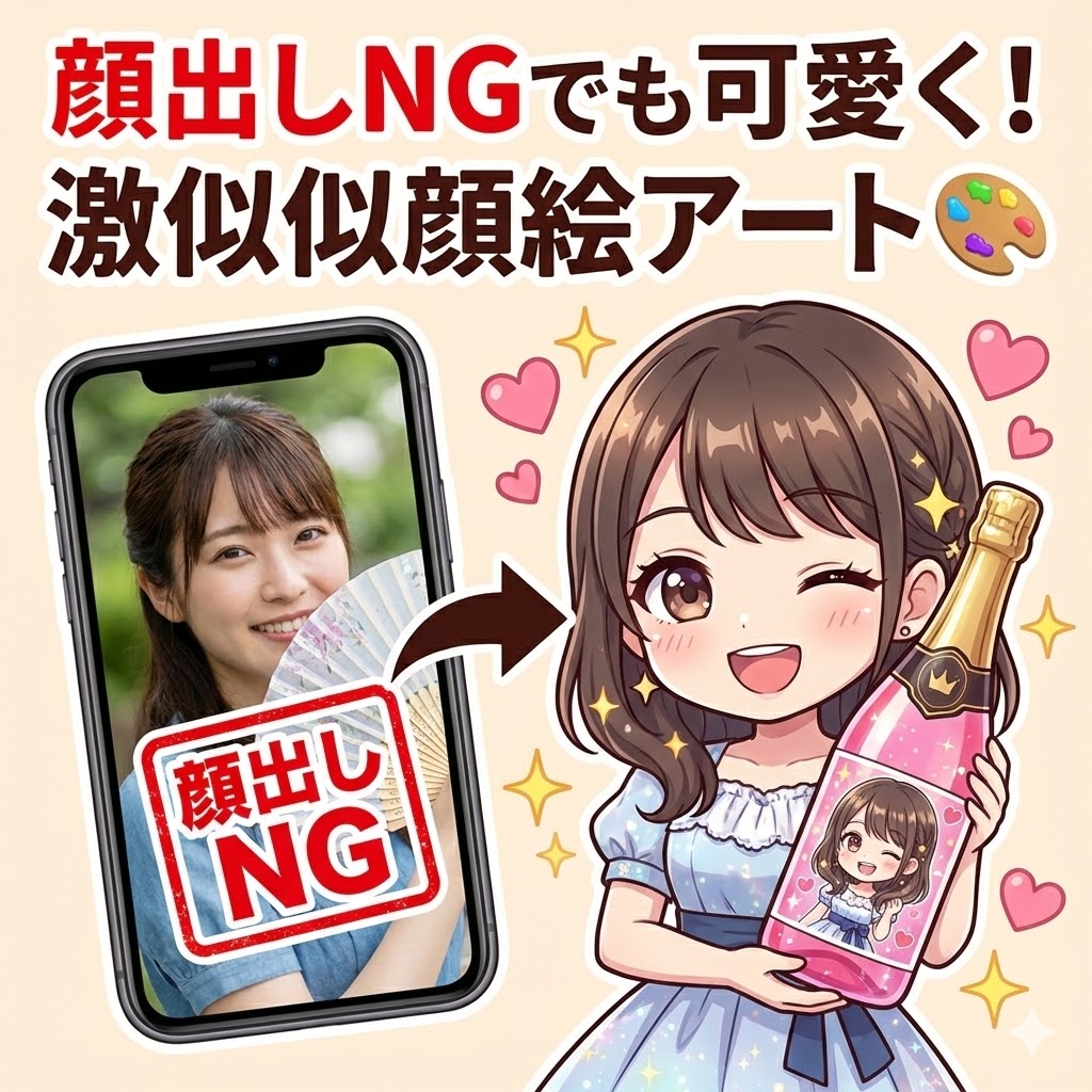 飲めない子が多い店なので、お酒NGでも楽しめるイベントにしたくて相談しました。提案してくれた「ソージェニー(高級ノンアル)」のオリシャンが、見た目も味も最高で大好評!顔出しNGの子には「似顔絵作成オプション」を使って、全員が主役になれました。